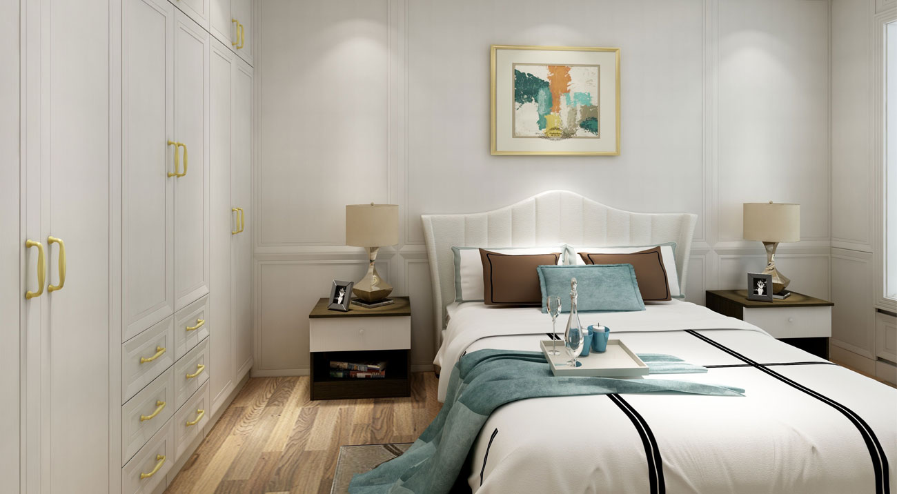 Not all wardrobes have to be placed on the side of the bed. Try to customized a set of wardrobes around the bed. It is very practical.