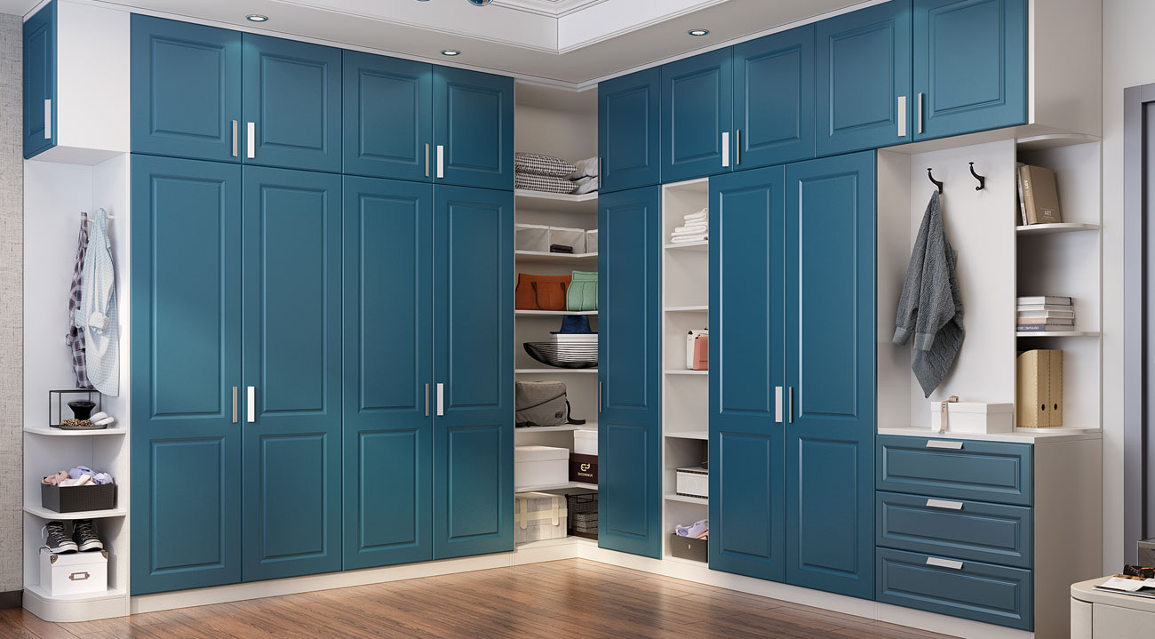 The blue wardrobe forms the most prominent design feature of this bedroom. Its contemporary appearance brings any bedroom up to date, this wardrobe provides plenty of storage.