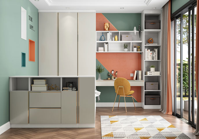 Extending from the opposite side of the headboard, the closet attached to the bed meets the bedroom storage requirements efficiently. It's a perfect wardrobe idea for small bedrooms where a wardrobe can be created without making the room look cramped.